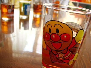 アンパンマン、ミッフィー、ひこにゃんのグラスでかんぱーい!