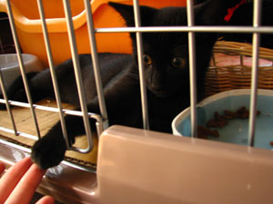 自分のしっぽをなにかの動物だと思って反応したり、柵から手を出してきたり、人がいなくなるとさびしがってみゃーみゃー鳴いたり、かわいいの!外で一緒に遊びたかった・・・。