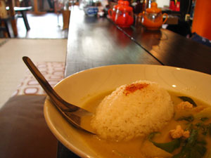 猫と遊びすぎて忘れかけていたけれど、ランチのグリーンカレーをいただきました。