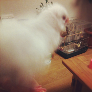 夜の挿し餌タイムまで粟玉をついばんだりしていい子に待つあめちゃん・・・
