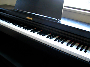 カワイの配送のオッチャンが、2人がかりで階段をえっさほいさ運んでくれました。