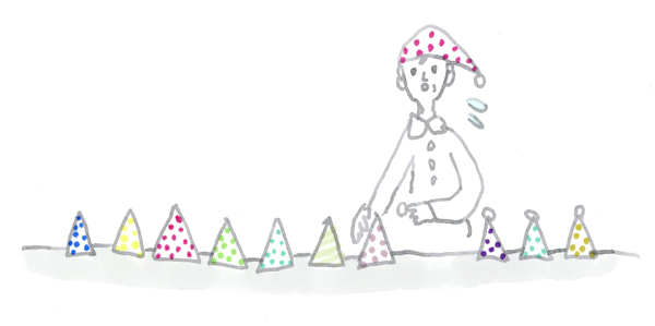 かわいそうなので、寝る暇もなくナイトキャップ工場で働くあきぴょんの絵を描きました。