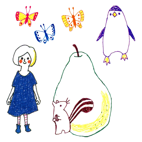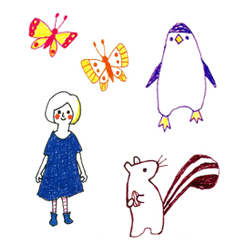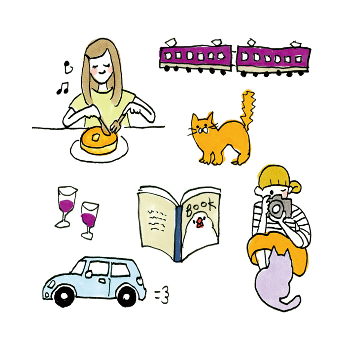 好奇心旺盛な8人の女子たちと、乗り物や動物などのカットを1冊分担当しています。