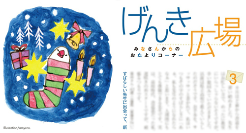 健康食品カタログ『みんな、げんき?』の読者のおたよりを紹介するコーナーのイラストを描きました。